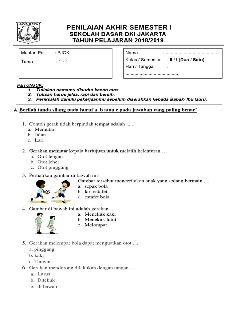 Olahraga Anak Gerak Dasar Jalan Lari Loncat Lompat Memutar Mengayun Menekuk Melempar Menagkap Kelas 1 Sem 2