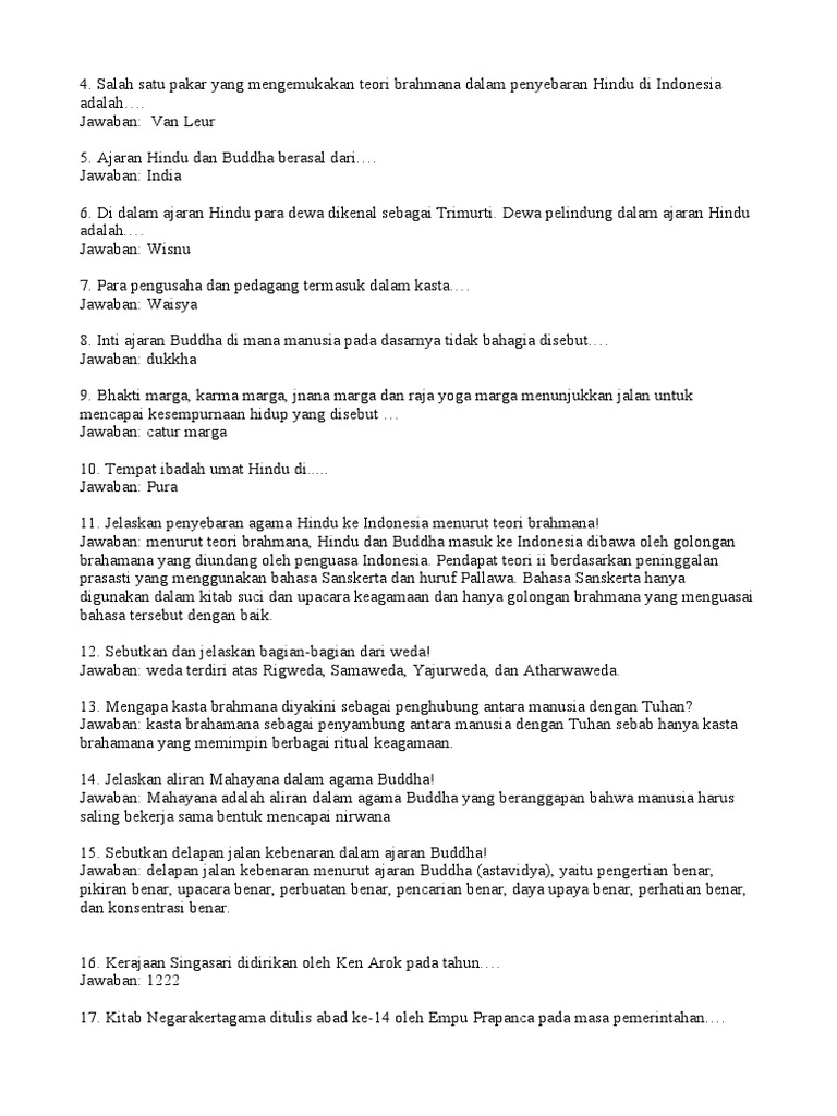 Demikian contoh soal dan jawaban tentang apakah latar belakang masuknya agama hindu budha ke Indonesia saluran penyebaran agama hindu budha di Indonesia teori masuknya agama hindu dan budha di Indonesia apa yang dimaksud dengan sinkretisme dan juga akan disebutkan 4 kitab suci umat hindu. Veda dibagi menjadi 4 bagian. Weda adalah sabda suci atau.