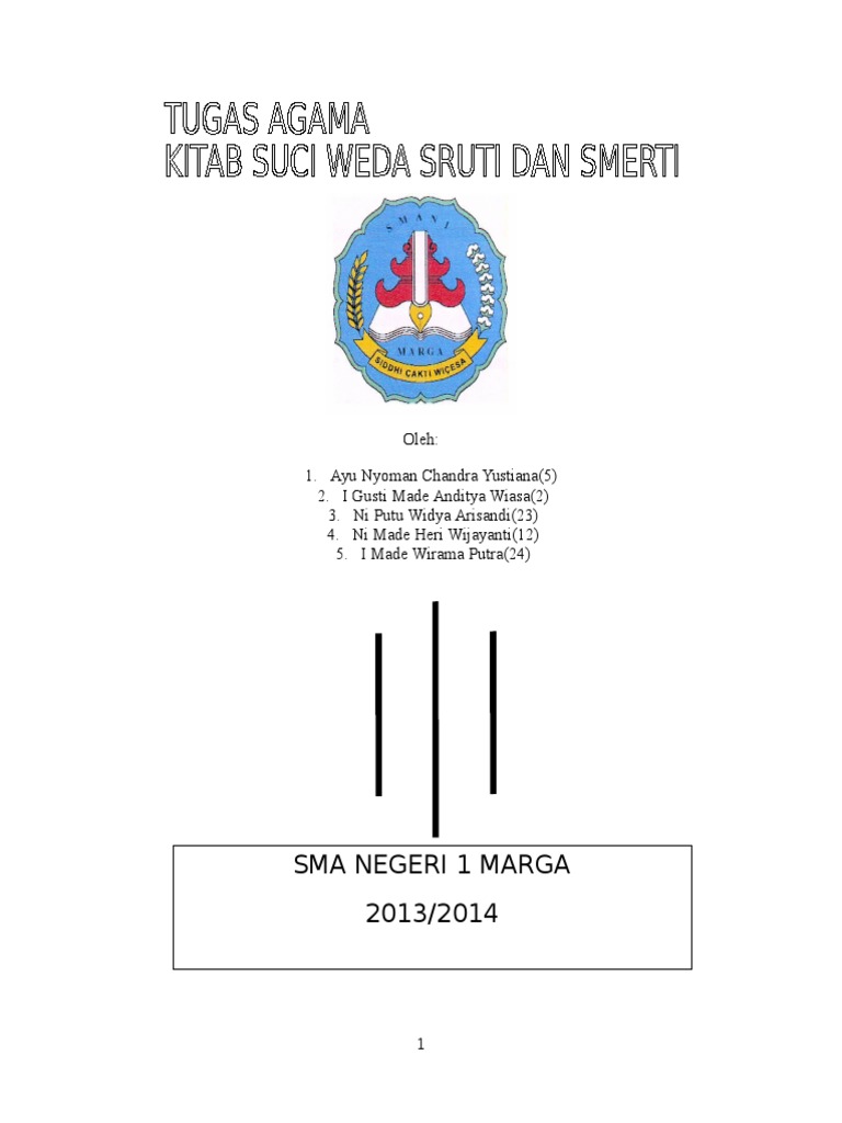 I GUSTI AYU ADE SURIANTINI NIM. 141221005 INSTITUT HINDU DHARMA NEGERI DENPASAR BAB I PENDAHULUAN 11 Latar Belakang Sebagai kitab suci umat Hindu ajaran Veda diyakini dan dijadikan pedoman oleh umat Hindu sebagai sumber bimbingan dan informasi yang diperlukan dalam kehidupan sehari-hari. Ada banyak kitab dalam agama Hindu yg diakui sebagai kitab suci mereka.