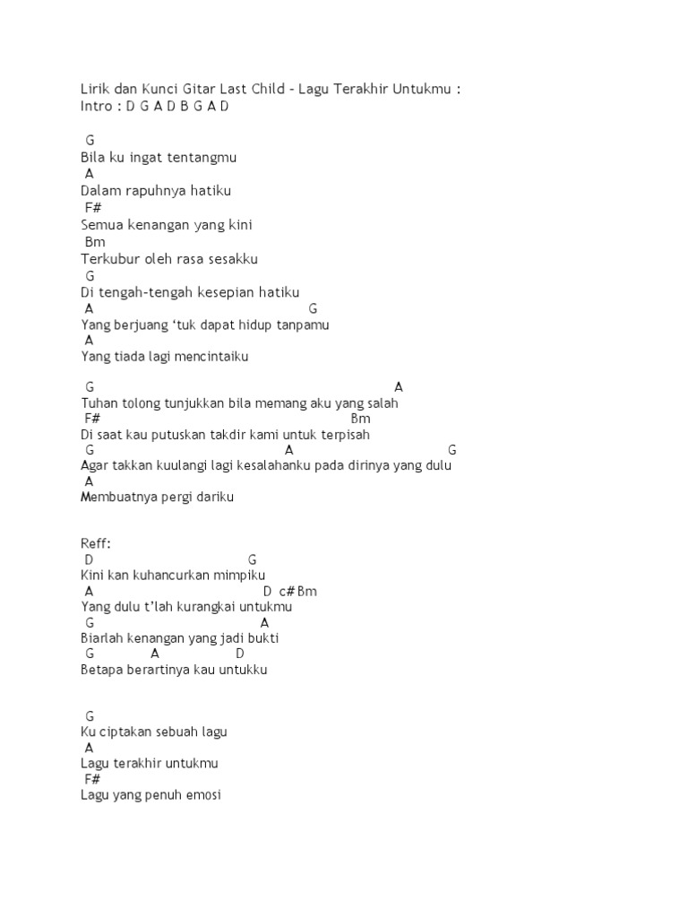 10102020 Last Child - Chord Gitar dan Lirik Lagu Diary Depresiku - Last Child Kunci Mudah. Create and get 5 IQ. Ku ingat saat ayah pergi dan kami mulai kelaparan.
