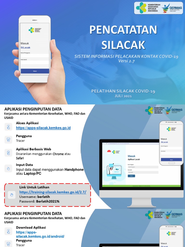 Data Laporan dan Dokumentasi Referensi. Satgas Covid-19 dan kemenkes tanah air telah meluncurkan sebuah program penguatan dalam penanganan masa pandemi. 12082021 Aplikasi SiLacak Kemkesgoid Cara Daftar Silacak Kemenkes Semakin banyaknya yang terpapar pandemi corona virus tentu membuat pemerintah memberikan pelayanan terbaik dalam informasi yang diberikan kepada masyarakat terutama Read More.