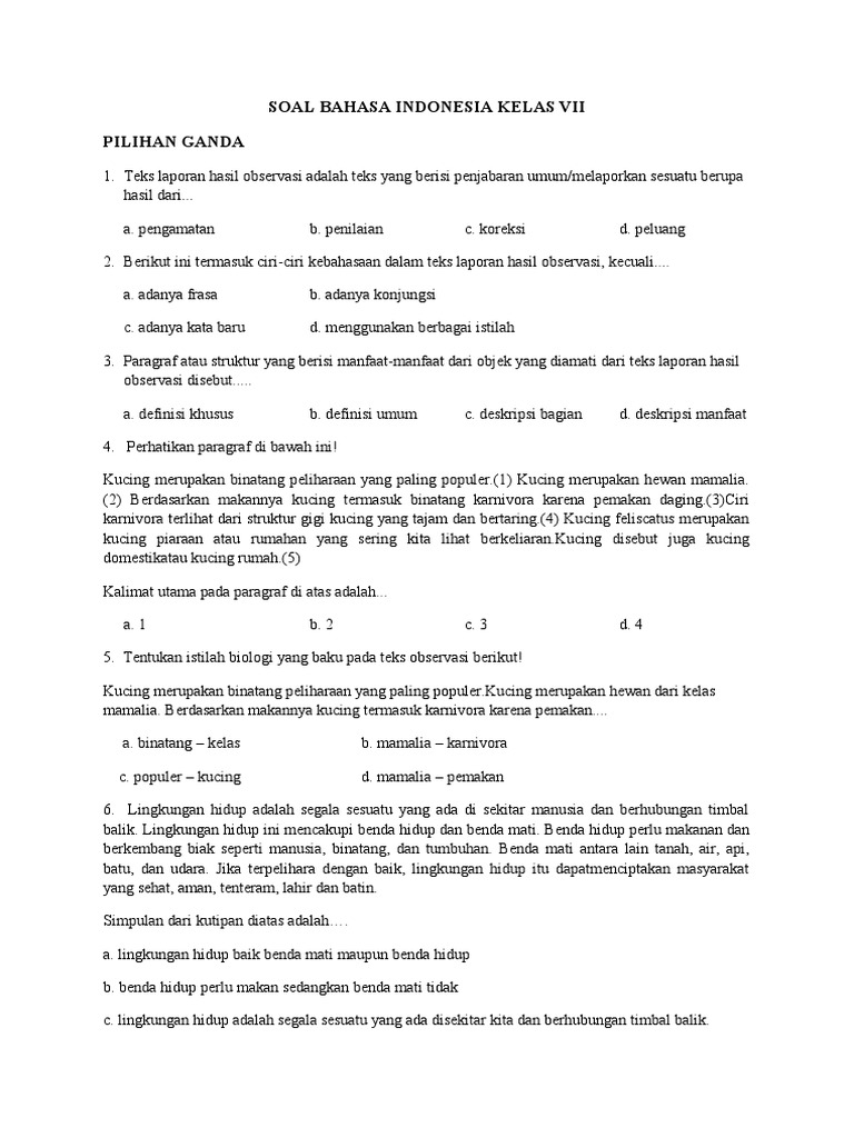 26092020 Soal Teks Laporan Hasil Observasi Pilihan Ganda dan Jawaban Teks laporan adalah teks yang berisi penjabaran umum melaporkan sesuatu berupa hasil dari pengamatan observasiTeks laporan report ini juga disebut teks klasifikasi karena memuat klasifikasi mengenai jenis-jenis sesuatu berdasarkan kriteria tertentu. Sehingga teks laporan hasil observasi dapat pula diartikan sebagai teks yang berisi mengenai penjabaran umum ataupun. Definisi khusus definisi umum - 33.