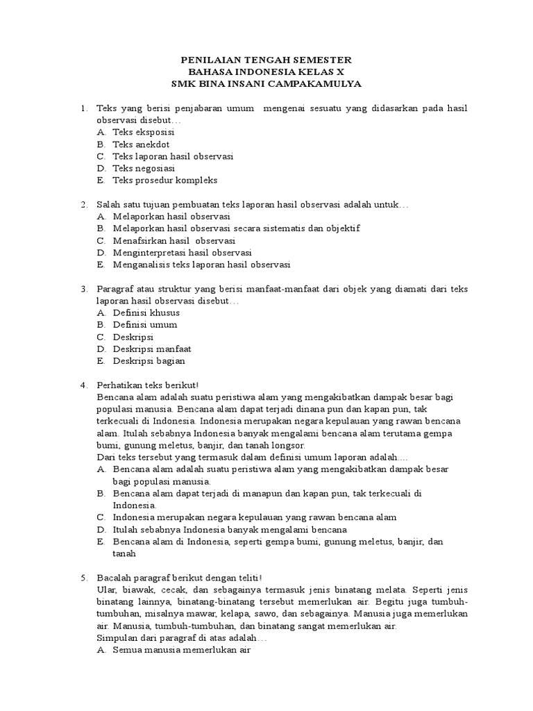 Soal Pts Bahasa Indonesia Kelas X Revisi