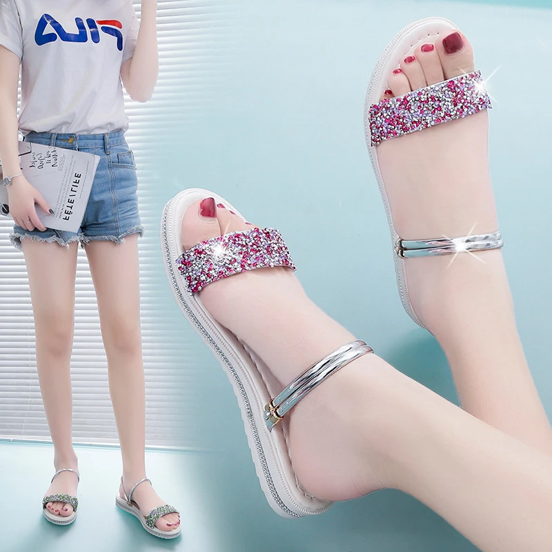 Mxhy2019 Musim Panas Sandal Korea Peri Payet Dua Memakai Siswa Joker Pantai Datar Bawah Kata Sandal Sandal Wanita Sandal Sepatu Sandal Aliexpress