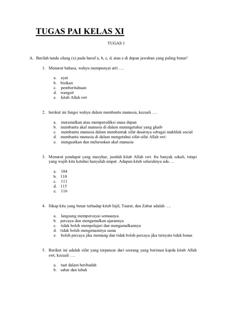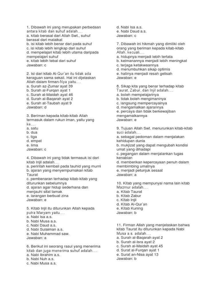 Percaya dan tidak berkewajiban mengamalkannya Jawaban. Tidak boleh mengimaninya c.