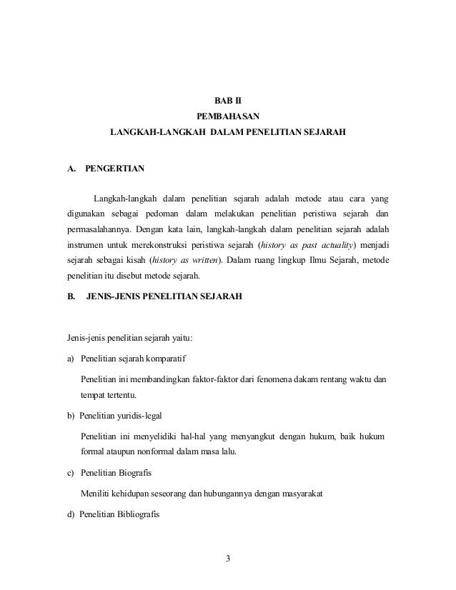 24082017 Sejarah sebagai kisah adalah hasil karya cipta dan penelitian berbagai ahli yang kemudian menulisnya. 18112013 Metode dan Langkah-langkah Penelitian Sejarah Metode dapat diartikan sebagai langkah-langkah atau cara-cara yang harus ditempuh untuk menjelaskan objek yang dikajinya. 29052016 Penelitian merupakan suatu kegiatan yang dilakukan untuk menguji dan atau menemukan teori-teori baru dengan menggunakan suatu metode ilmiah.