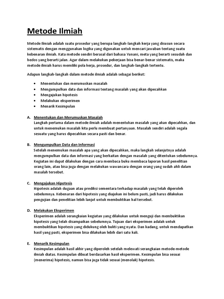 Doc Metode Ilmiah Dan Langkah Langkahnya Simon Giyai Academia Edu