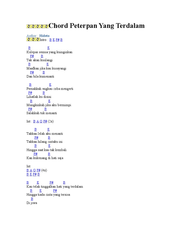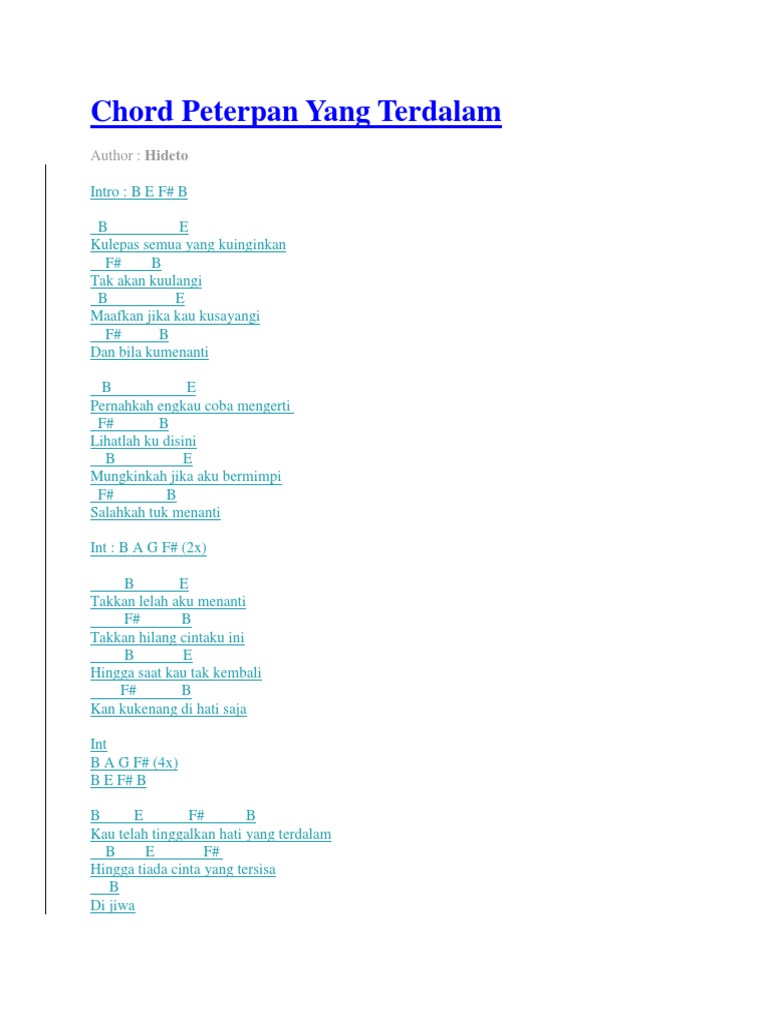 Kumpulan Chord Dan Lirik Lagu Peterpan Yang Terdalam Intro B E F B B E Kulepas Semua Yang Kuinginkan F B Tak Akan Kuulangi B E Maafkan Jika Kau