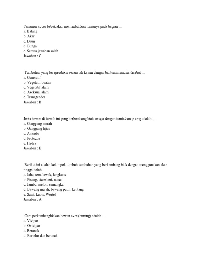Kelas 9 Soal Perkembangbiakan Tumbuhan Dan Hewan Pdf
