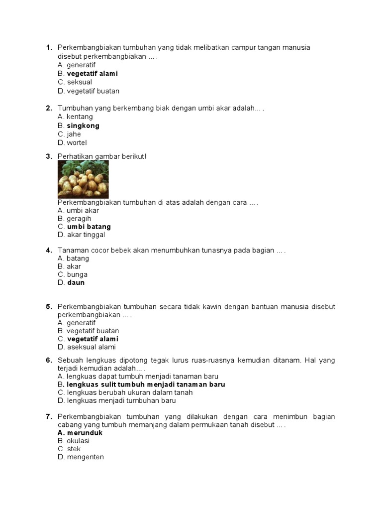 Kumpulan 80 Contoh Soal Perkembangbiakan Tumbuhan Secara Vegetatif Dan Kunci Jawaban Ipa Kelas Vi