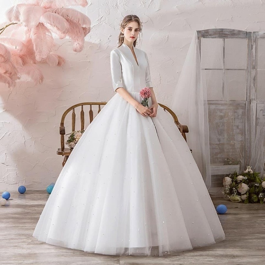 Gaun pengantin model ball gown adalah model gaun pernikahan ala kerajaan. Kamu bisa memilih gaun yang memiliki siluet a-line yang klasik ini. Karena gaun ini tak.