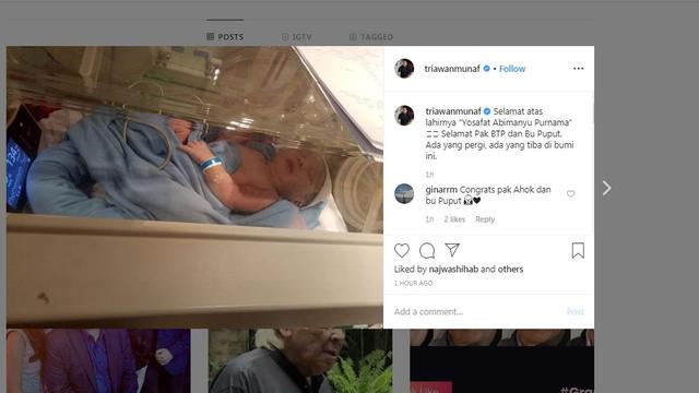 06012020 Menengok potret anak Ahok inilah foto lucu buah cinta mereka yang diunggah dalam akun Instagram triawanmunaf.
