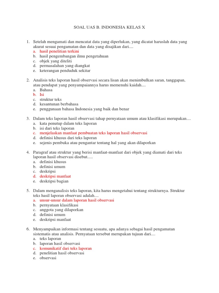 B Indo Soalsoal Docx Soal Laporan Hasil Observasi 1 Setelah Mengamati Dan Mencatat Data Yang Diperlukan Yang Dicatat Haruslah Data Yang Akurat Sesuai Course Hero