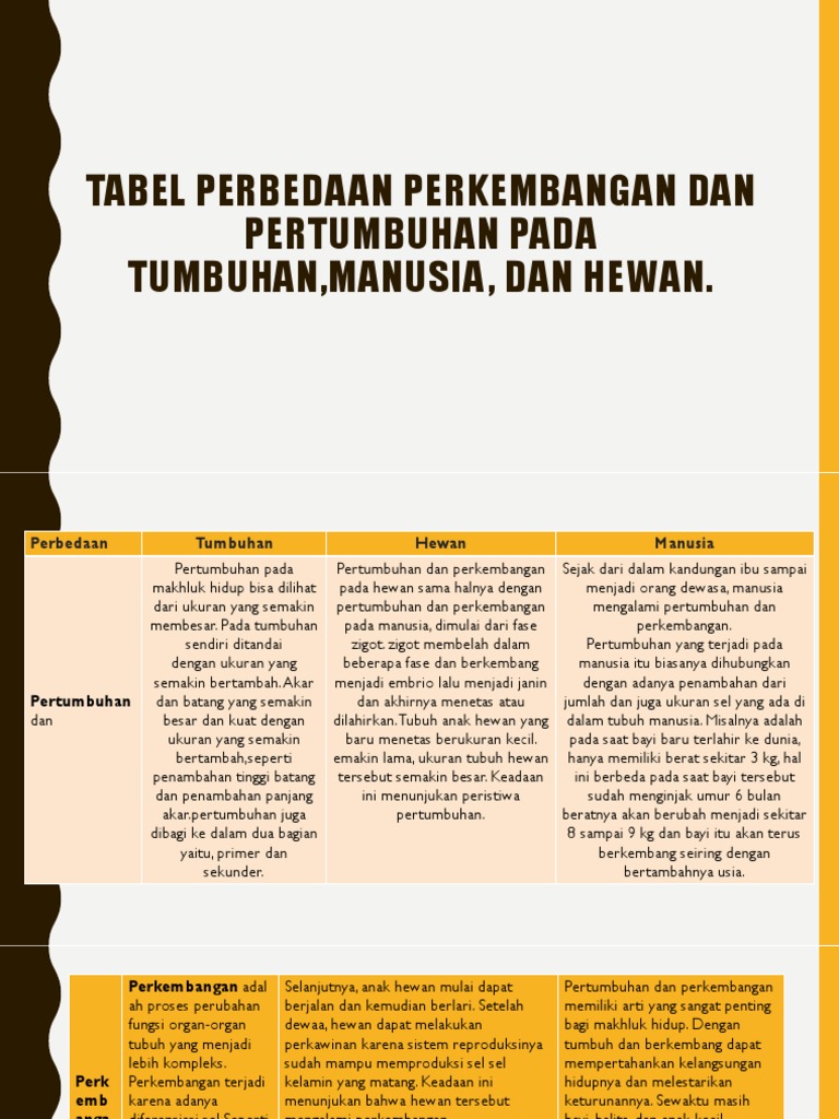 Tabel Perbedaan Perkembangan Dan Pertumbuhan Pada Tumbuhan Manusia