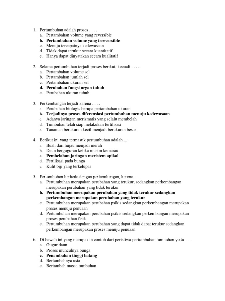 Soal Tes Evaluasi Materi Pertumbuhan Dan Perkembangan