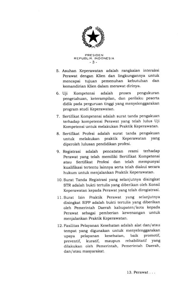 Undang-undang UU TENTANG Keperawatan. Perawat berperan dalam memberikan pelayanan kesehatan mulai dari pelayanan pemerintah dan swasta dari perkotaan hingga pelosok desa terpencil dan perbatasan. Berikut isi UU Nomor 38 tahun 2014 tentang Keperawatan bukan format asli.