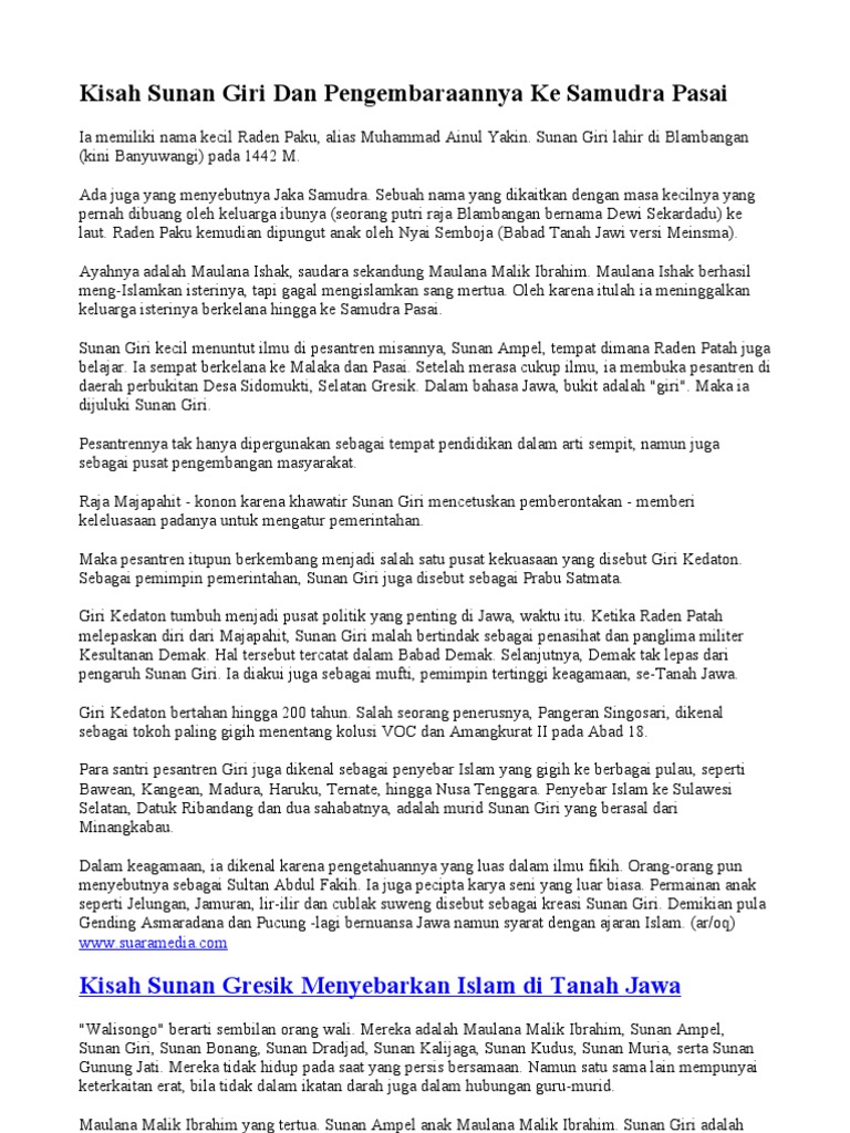 Kisah Sunan Giri Dan Pengembaraannya Ke Samudra Pasai Kisah Sunan Gresik Menyebarkan Islam Di Tanah Jawa