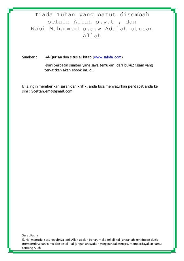 Pernyataan tidak ada tuhan yang patut disembah selain allah terdapat dalam. Jumlah jam pelajaran yang terbatas dengan materi yang diserat menyebabkan guru agama mengambil jalan pintas yang paling mudah yaitu melihat pendidikan agama tidak lebih sebagai. Segala keputusan menjadi wewenang-Nya dan. 03052020 Oleh kerana Allah adalah satu-satunya Tuhan yang mencipta dan menguasai alam ini maka sudah tentu hanya Dia sahaja Tuhan yang berhak dipuji ditaati dan disembah.