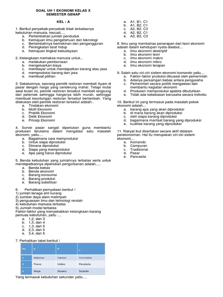 1soalunbk Docx 1 Topik Kebutuhan Manusia Yang Tidak Terbatas Dengan Kelangkaan Sumber Daya Kelangkaan Merupakan Inti Masalah Ekonomi Yang Salah Course Hero