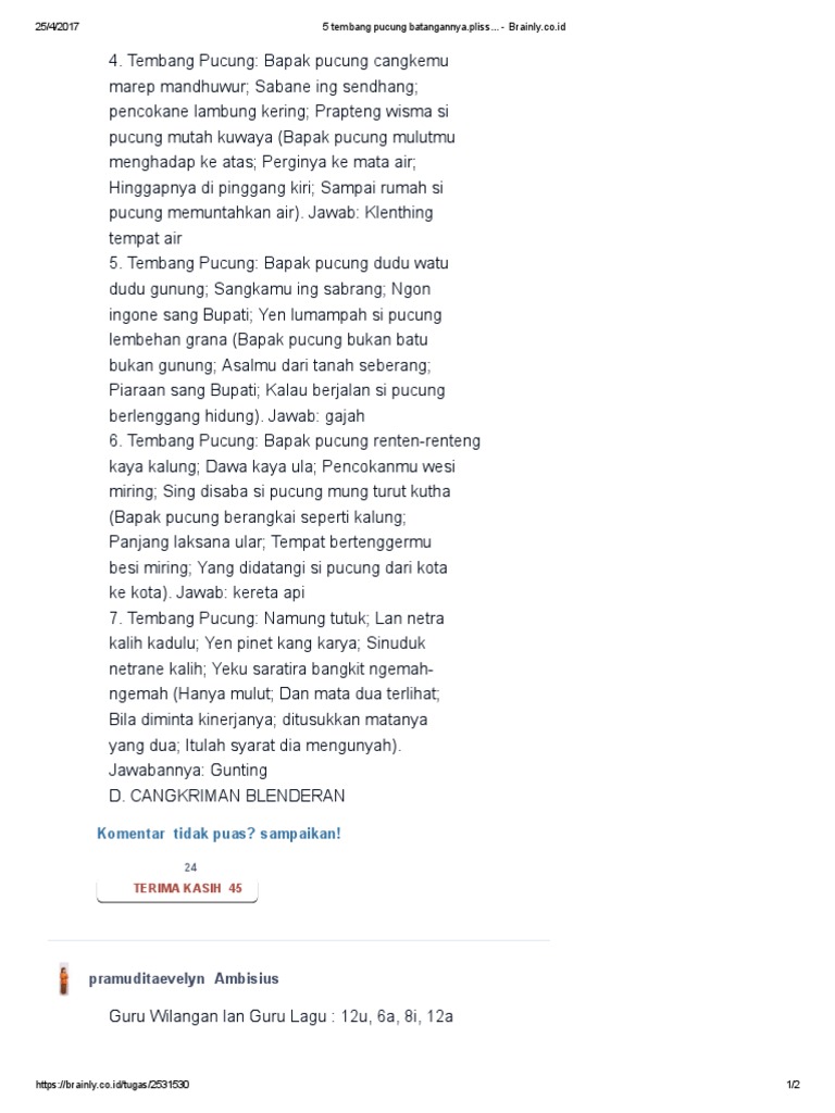 5 Tembang Pucung Batangannya Pliss Brainly Co