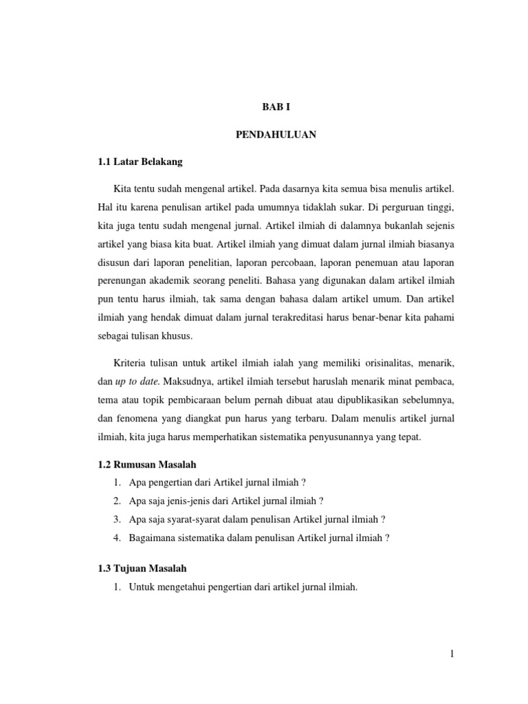 Sebagai sebuah karya tulis ilmiah artikel yang ditulis tentu harus mengikuti sistematika dengan susunan seperti Judul Nama Penulis Sponsor Abstrak dan kata kunci. 30072018 Contoh Artikel Jurnal Pendidikan. 08122020 Artikel jurnal adalah satu-satunya tulisan yang dirancang untuk penelitian swadana yang mana sistem penulisan artikelnya tanpa menggunakan sistem angka atau pun abjad.