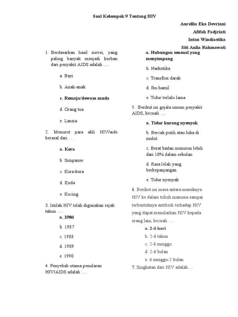 Soal Materi Hiv Aids Jawabanku Id
