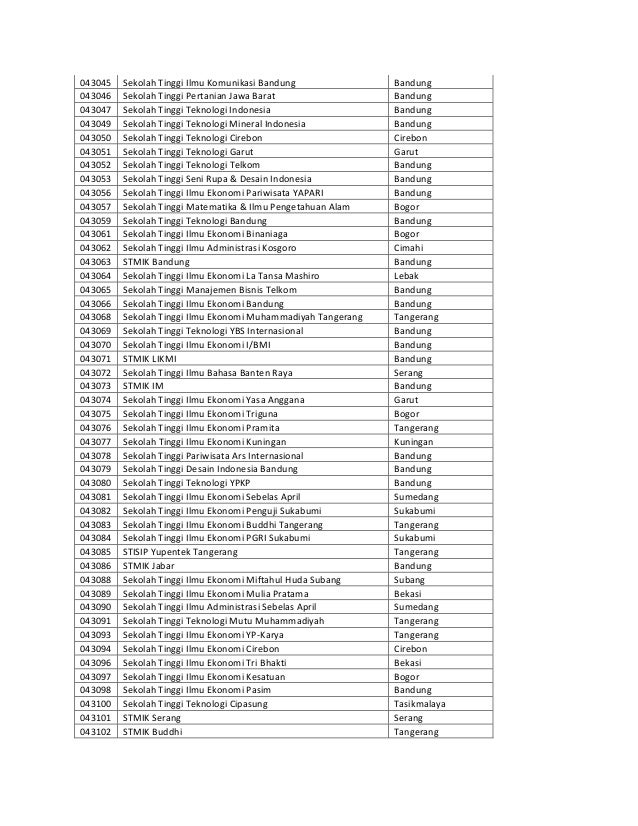 Daftar Kode Ptn Dan Pts Se Indonesia 2020 Yusuf Studi
