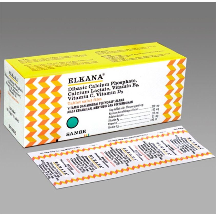 Elkana tablet. Kandungan mineral dan vitamin yang cukup banyak dalam Elkana ini tergolong multivitamin yang sangat baik dikonsumsi khususnya pada ibu dalam masa hamil dan menyusui serta anak anak dalam masa pertumbuhan. Dibasic calcium phosphate 200 mg Calcium lactate 100 mg Vitamin B6 20 mg Vitamin C 25 mg Vitamin D 100 IU. Defisiensi vitamin dan mineral.