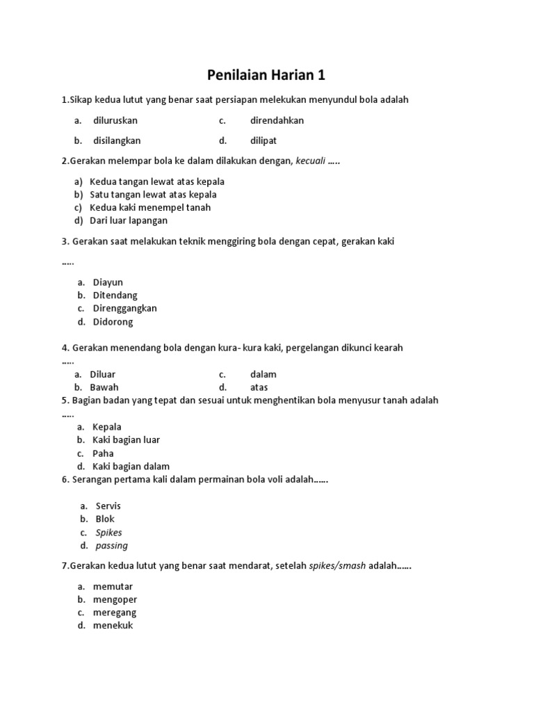 Kumpulan Soal Penjasorkes Keas 8 Kurikulum 2013