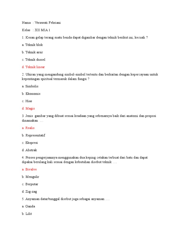 50 Contoh Soal Uas Seni Rupa Kelas 7 Smp Mts Dan Kunci Jawaban