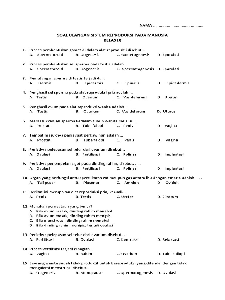Soal Latihan Sistem Reproduksi Smp Berantas Kebodohan Di Bona Pasogit