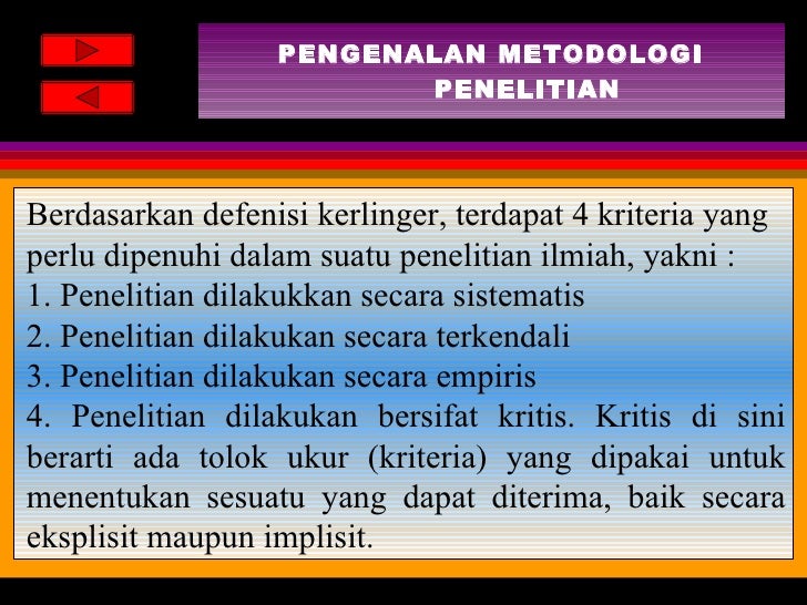 Mata kuliah metode penelitian. Penelitian merupakan wilayah penterapan dari kemampuan berpikir ilmiah yang diorientasikan oleh mata kuliah filsafat ilmu pada tataran filosofis dan kemampuan menerapkan sarana berpikir ilmiah yang diorientasikan oleh mata kuliah seperti bahasa matematika dan statistik pada tataran teknis. Cara yg tepat utk melakukan sesuatu Logos -. Modul ini disusun dalam tiga bab.